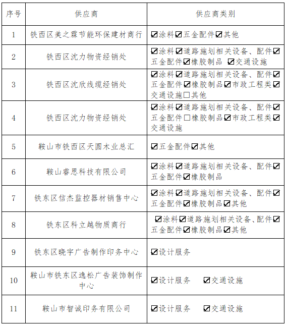 供應(yīng)商入庫(kù)名單公告2